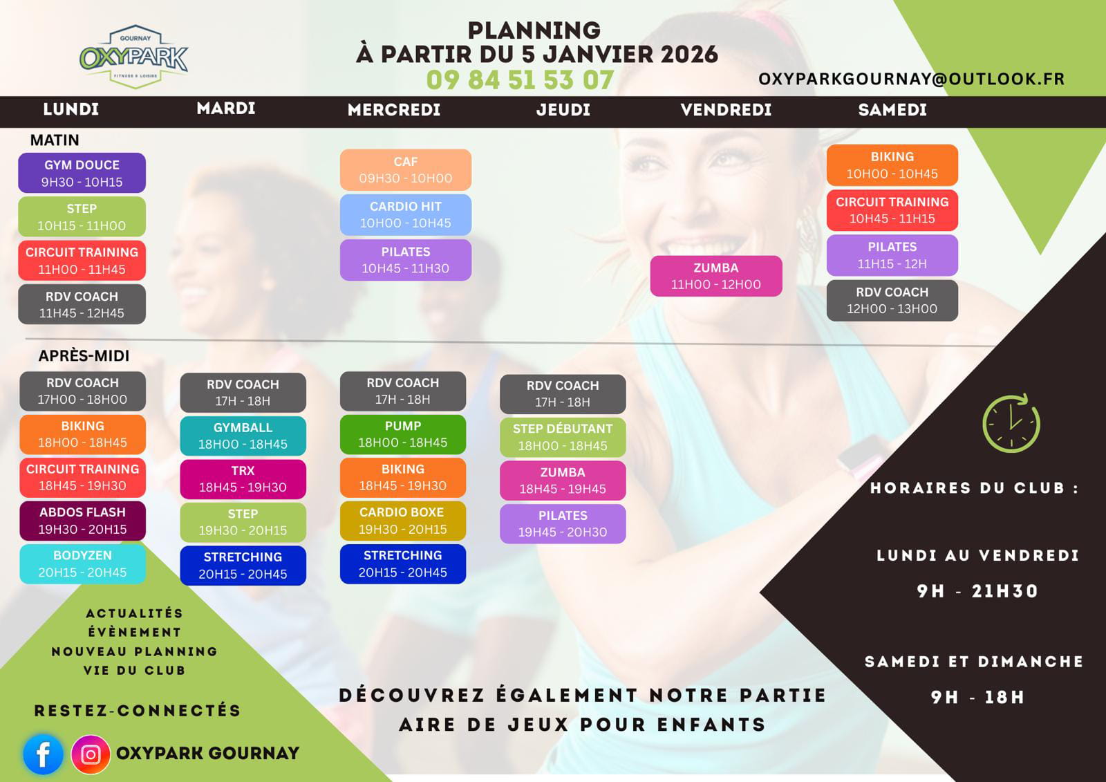 LUNDI AU VENDREDI   09H – 21H30